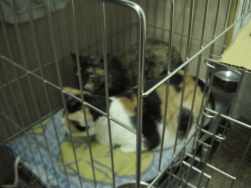 晚上朋友將牠住慣的箱子帶來,我舖上電毯,牠在裡面待了一夜。