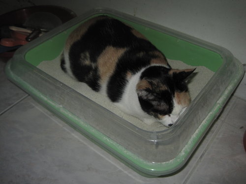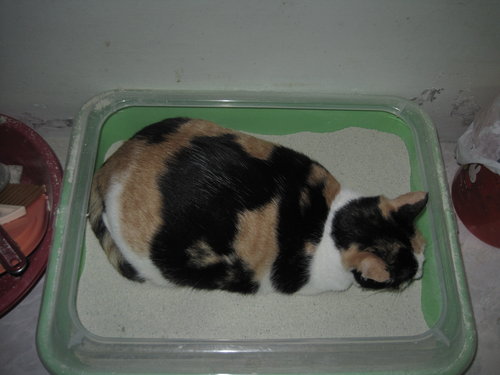 花媽媽剛到我家時,大概以為牠身上的花紋是迷彩裝,躲在沙盆裡人家就看不到牠