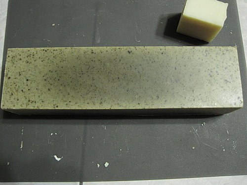 昨天晚上(1/11)脫模切皂,皂有一點點軟,但不會黏刀