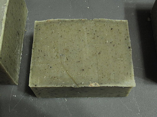 皂呈現出艾草粉的顏色----深墨綠,我好愛這個顏色哦,比未精酪梨油打出來的皂還要美