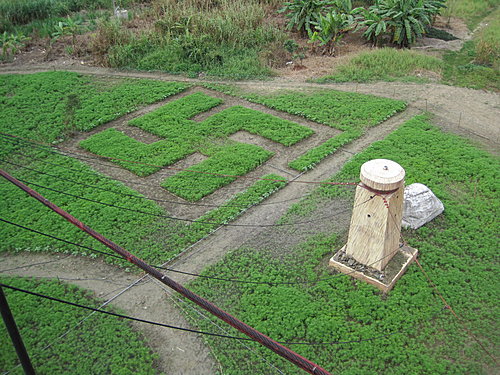 吊橋下面的花圃,圖案有精心設計過,可惜種的大波斯菊當時還未齊放,否則超美的。但也使我聯想到「神秘的麥田圈」