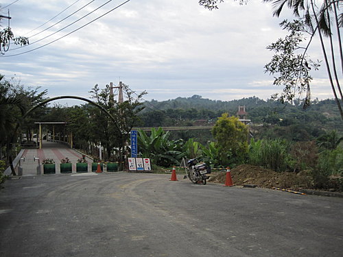 那三隻小貓就藏身在通往吊橋的路上,也就是彩色人行道旁的花圃或草叢中